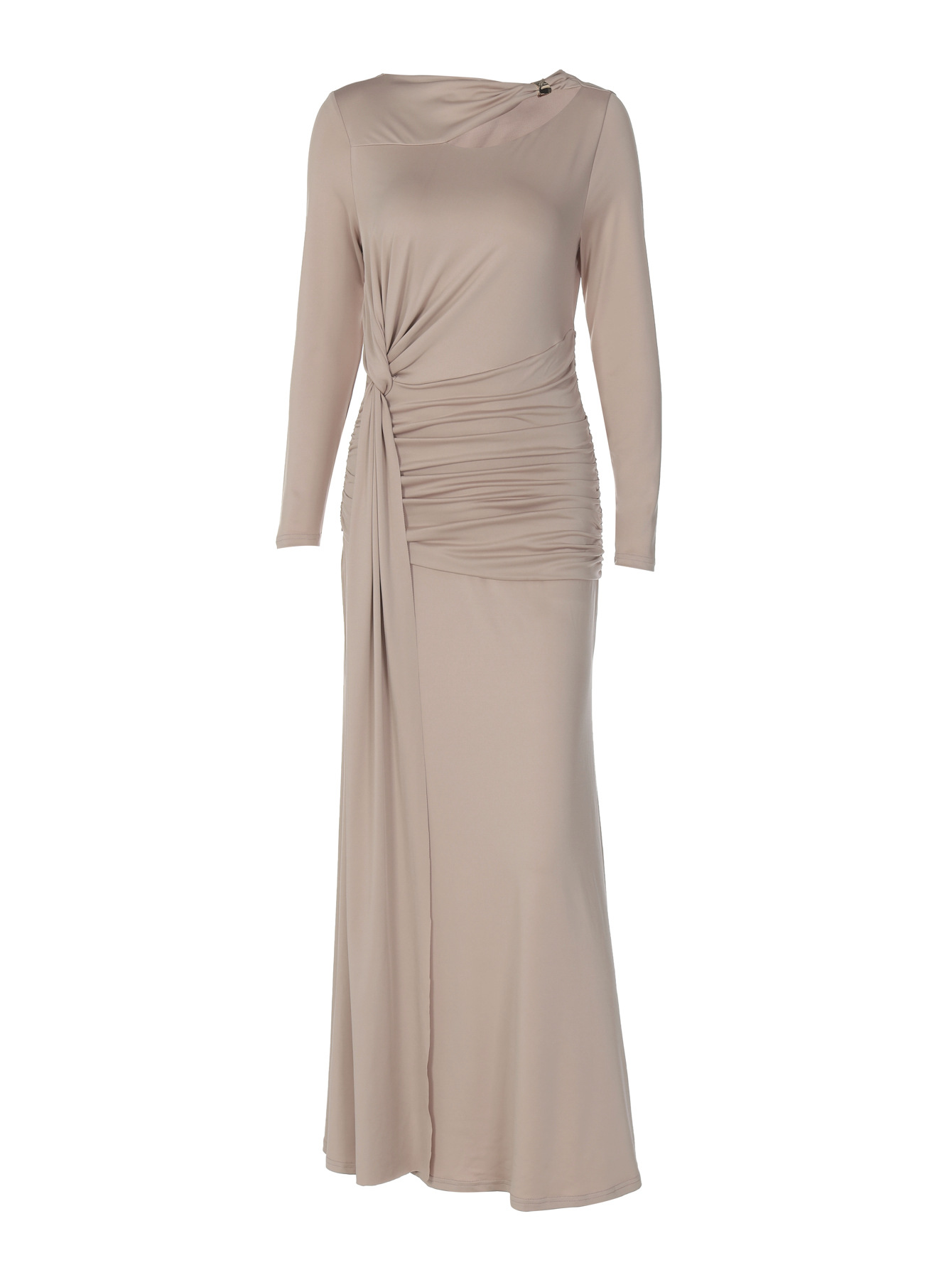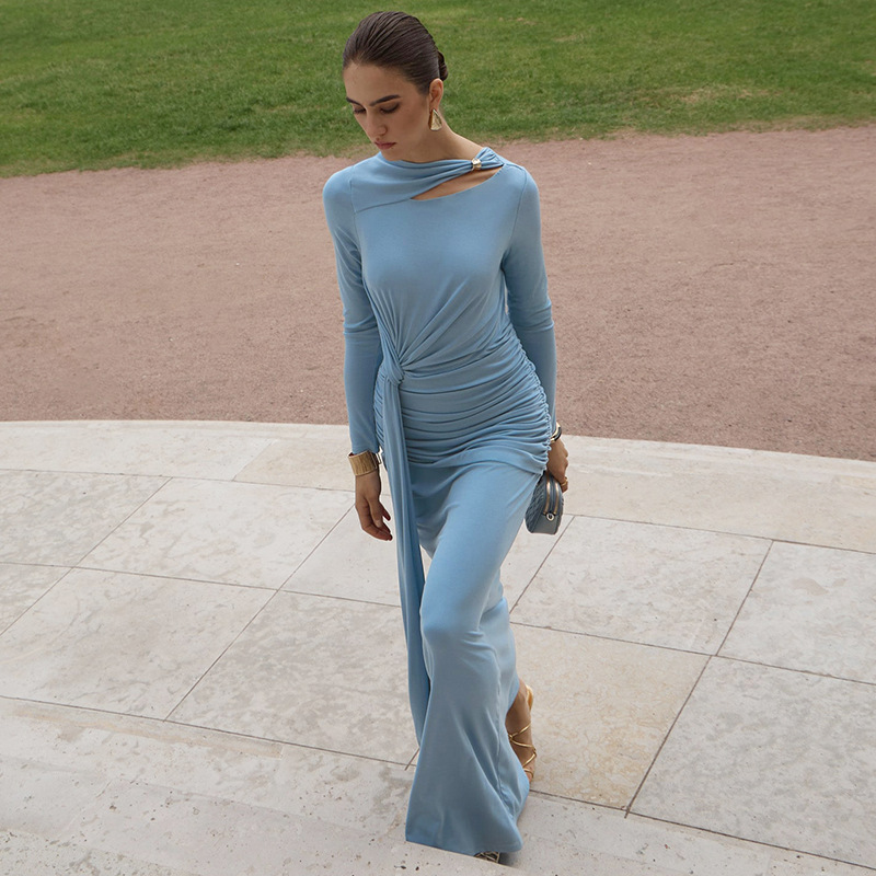 Fashionable Elegant Slim-fit Pleated Waist Tight Irregular Long Sleeve Dress